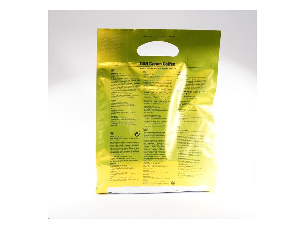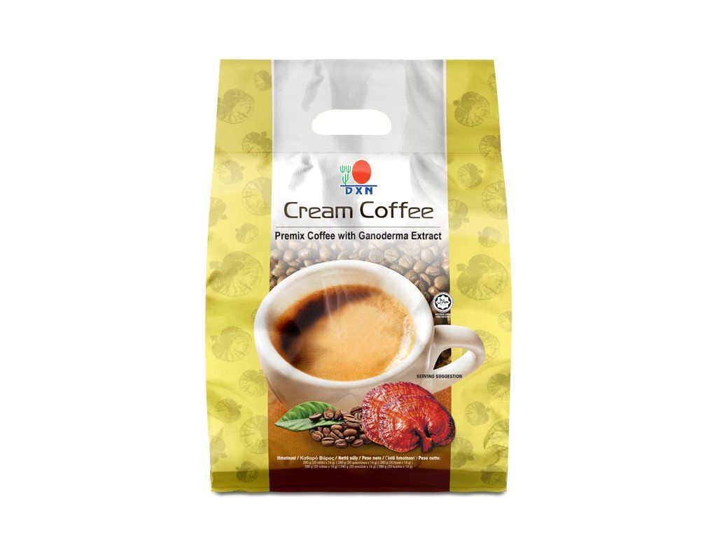 DXN Cream Coffee je harmonická zmes jemnej kávy s extraktom z huby Ganoderma lucidum (Lesklokôrovka obyčajná) a mliečnej smotany s bohatou arómou, hebkou hladkou textúrou a chuťou, ktorej neodoláte. Je bez pridaného cukru, odporúča sa tým, ktorí chcú znížiť jeho denný príjem. Každý dúšok kávy je lahodný.