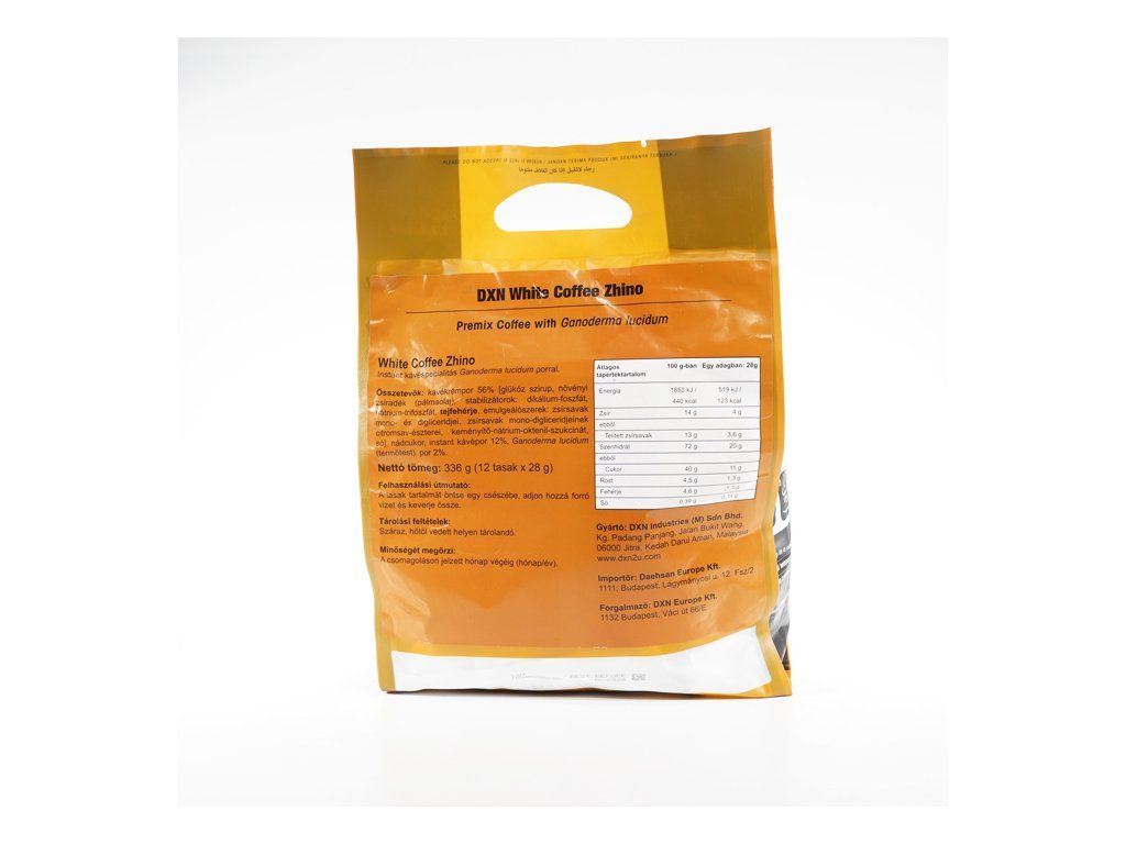 Pre uspokojenie túžby nadšencov pre cappuccino prišla spoločnosť DXN s novým produktom, ktorý možno ľahko a rýchlo pripraviť. Jednoducho nasypte obsah vrecka DXN White Coffee Zhino do šálky, zalejte horúcou vodou a zmiešajte, potom si ju už môžete vychutnať so svojou rodinou doma alebo s priateľmi v kancelárii bez toho, aby ste museli na ňu čakať v kaviarni. Je obalená ľahkou vrstvou zmrzlinovej peny a vyrobená pridaním extraktu z huby Ganoderma lucidum (Lesklokôrovka obyčajná). Najlepšie na pití šálky DXN White Coffee Zhino je jej hustá a krémová chuť, ale súčasne ľahký a vzdušný pocit v ústach. Príjemná aróma tohto instantného cappuccina nepriamo vyvoláva pocit radosti po tom, čo ste ho vypili. Nenechajte si ujsť príležitosť vyskúšať to, pretože objavíte lahodnú chuť, ktorá vám prinesie originálne cappuccino z Talianska.