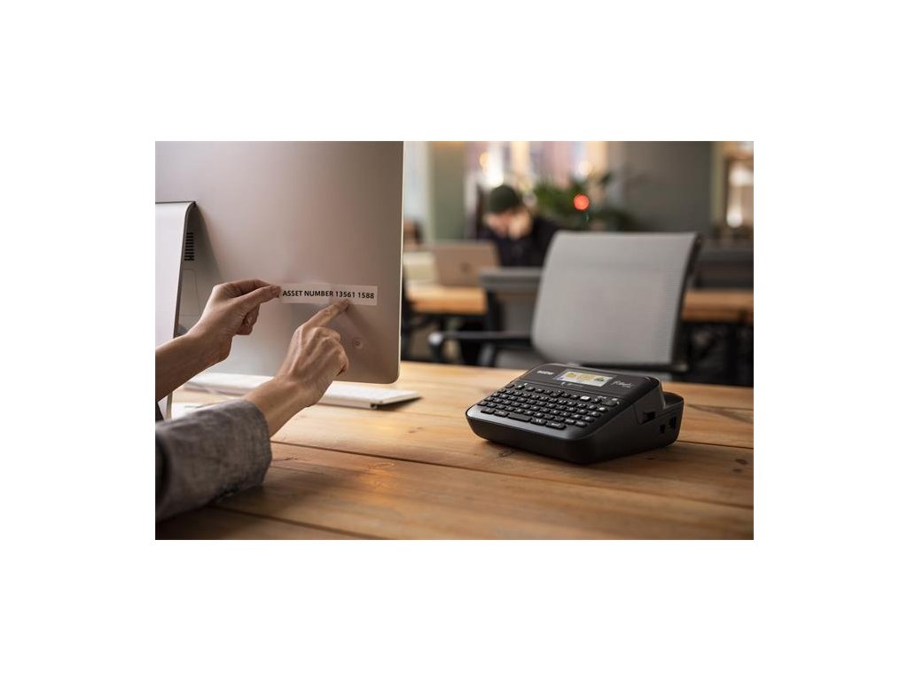 - príslušenstvo: napájací zdroj (AD-E001), USB kábel, 1 ks páska TZe-251S (4 m), manuál, CD so softvérom P-touch Editor, plastový kufrík