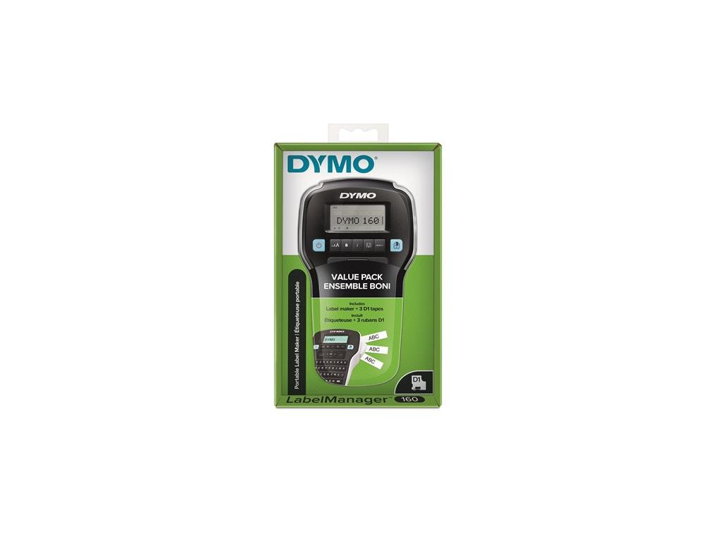 Elektrický etiketovač LabelManager 160 s 3 darčekmi zadarmo s 12 mm čiernobielou páskou D1 -QWERTY klávesnica -maďarské znaky -Veľký LCD displej -Automatické vypnutie -6 veľkostí písma, 8 štýlov textu, 4 textové rámčeky -DYMO funguje s kazetou D1 (s páskami širokými 6/9/12 mm) -Funguje so 6 „AAA“ batériami alebo adaptérmi (nie sú súčasťou balenia) 2-ročná záruka + ďalší 1 rok pri registrácii na www.dymo.com Značka: DYMO Výrobca: Newell Poland Services Sp. Z.o.o. Adresa: Poznan 61-894, Poland Web: www.DYMO.com Email: DymoEurope@newellco.comDodatočné parametre