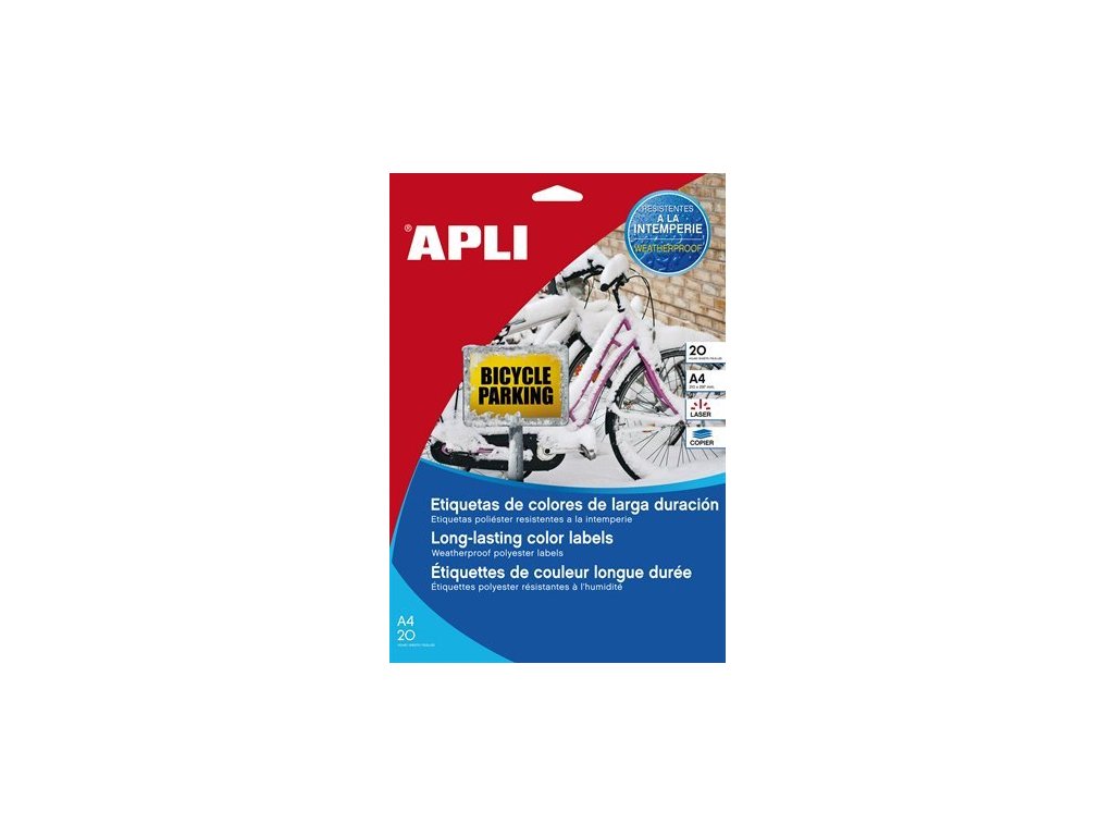 v žltej farbe vhodné pre laserové tlačiarne a kopírovacie zariadenia možnosť použitia aj v exteriéri dajú sa použiť pri teplote: -20°C a +100°C bezplatne stiahnuteľný softver APLI Soft na tvorbu etikiet: www.apli.comDodatočné parametre