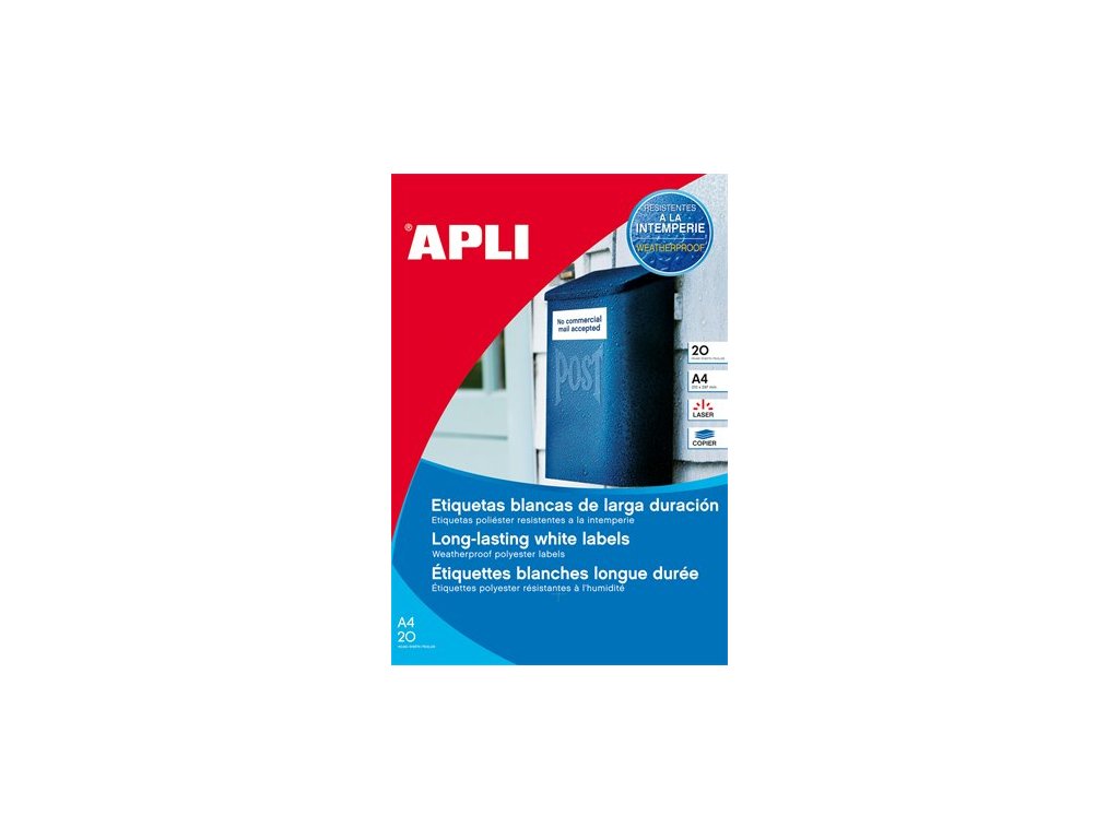 v bielej farbe vhodné pre laserové tlačiarne a kopírovacie zariadenia možnosť použitia aj v exteriéri dajú sa použiť pri teplote: -20°C a +100°C bezplatne stiahnuteľný softver APLI Soft na tvorbu etikiet: www.apli.comDodatočné parametre