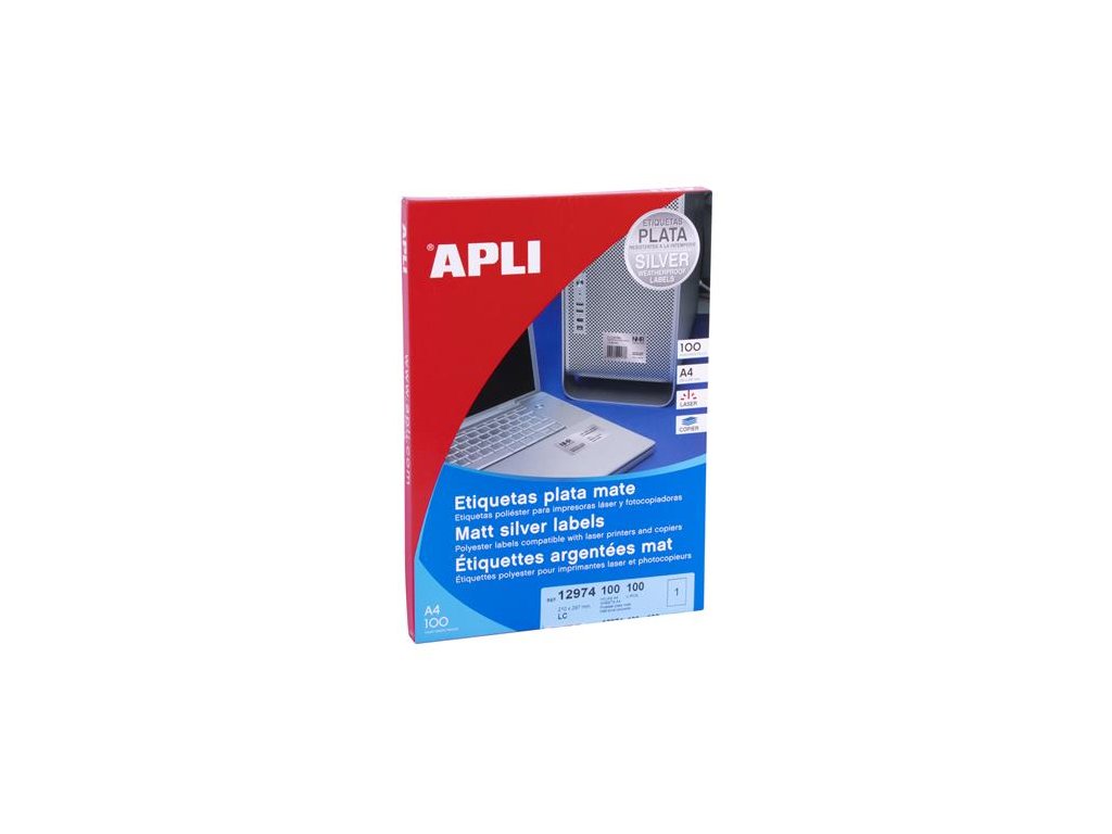 Etikety, 210x297 mm, polyester, odolné voči poveternostným podmienkam, APLI, strieborné, 100 etikiet/bal