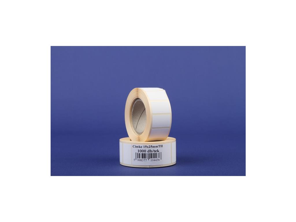 1000 etikiet/kotúč Rozmery: 15x25 mm Prevedenie: bez potlače Materiál: termo samolepiaci papierDodatočné parametre