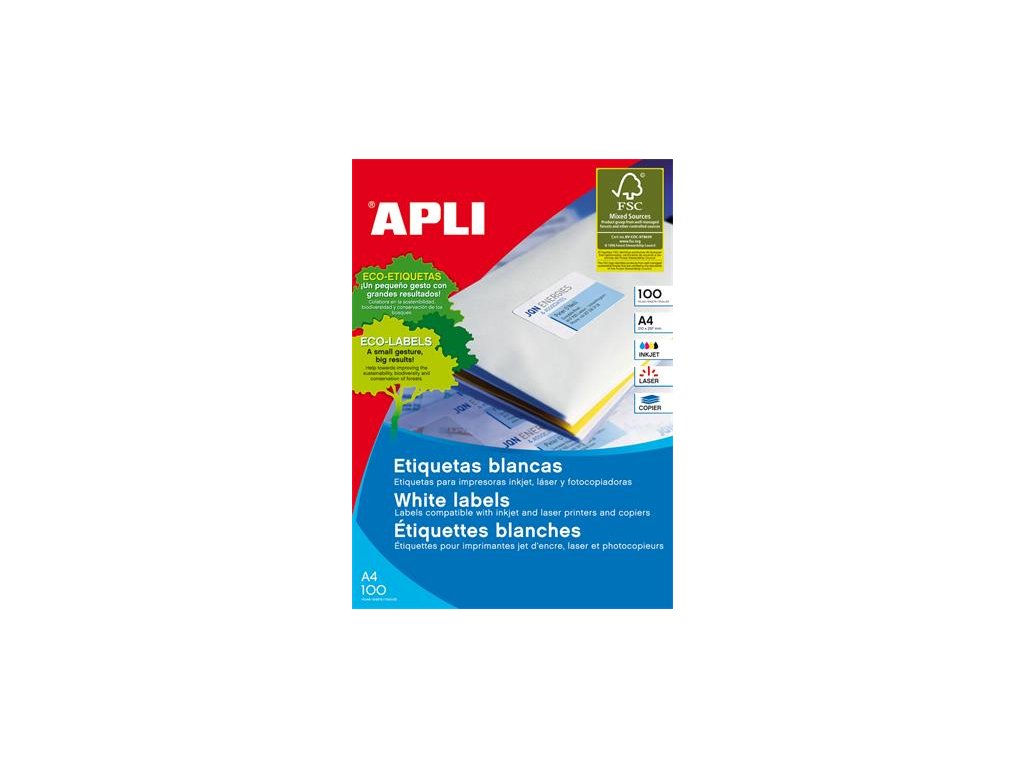 univerzálne biele etikety určené pre laserovú, atramentovú tlač a do kopírovacích strojov s certifikátom FSC zadarmo stiahnuteľný softver APLI Soft na tvorbu etikiet: www.apli.comDodatočné parametre