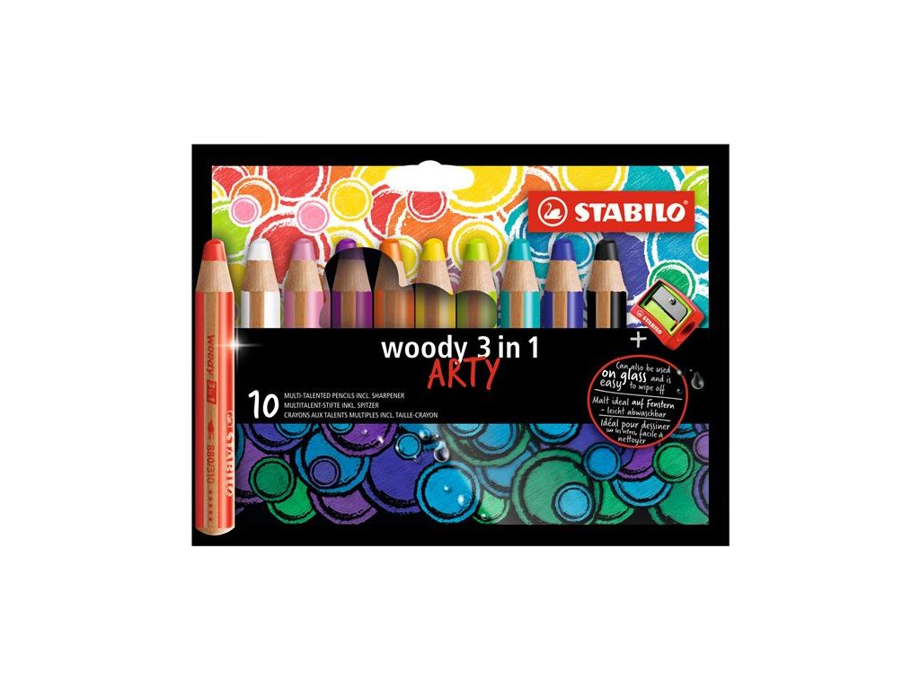 Farbička, hrubá, STABILO "Woody ARTY 3 in 1", 10 rôznych farieb