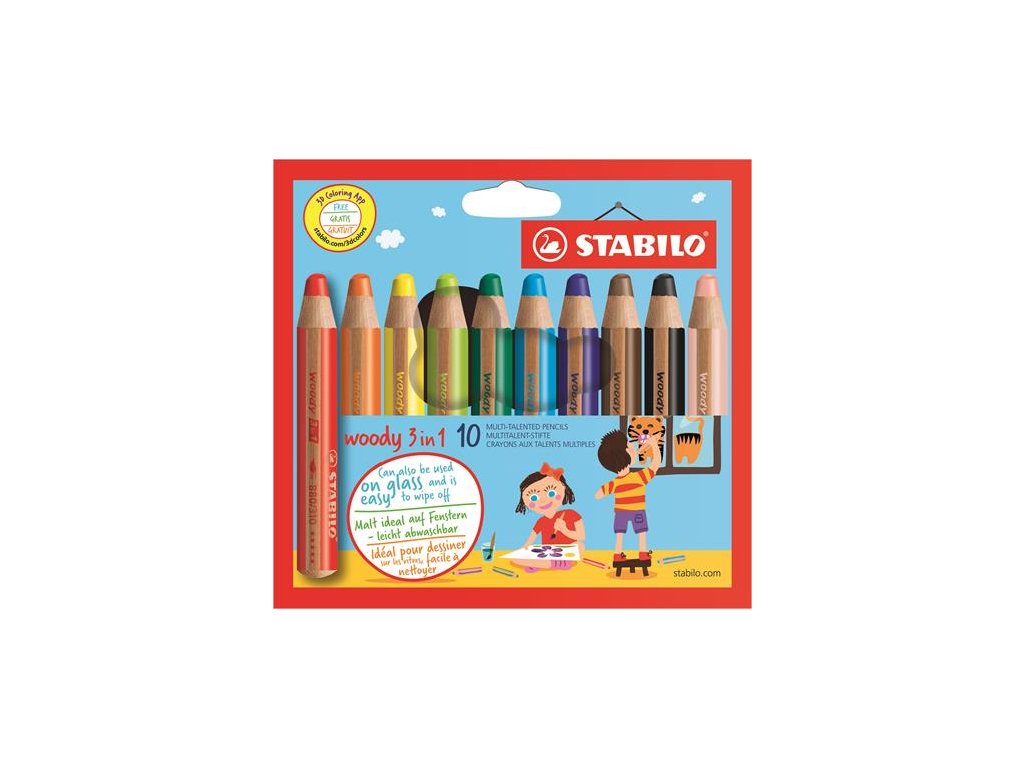Farebná ceruzka, hrubá, STABILO "Woody", 10 rôznych farieb