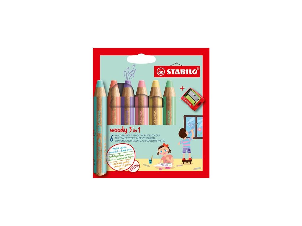 Farebná ceruzka, sada, hrubá, STABILO "Woody 3 in 1 Pastel", 6 rôznych pastelových farieb