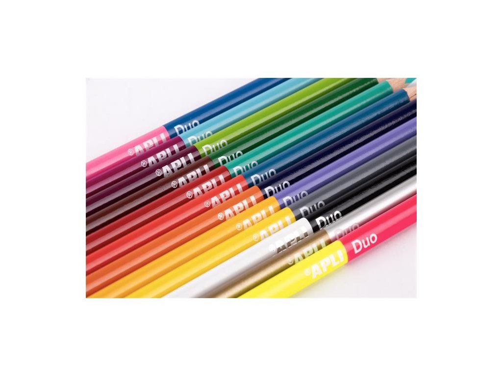 Farebné ceruzky, sada, obojstranné, trojhranné, APLI "Duo", 24 rôznych farieb