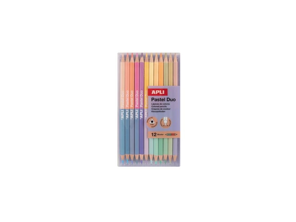 Farebné ceruzky, sada, obojstranné, trojhranné, APLI "Pastel Duo", 24 rôznych pastelových farieb