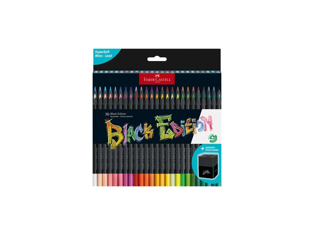 Farebné ceruzky, sada, trojhranné, FABER-CASTELL "Black Edition", 50 rôznych farieb