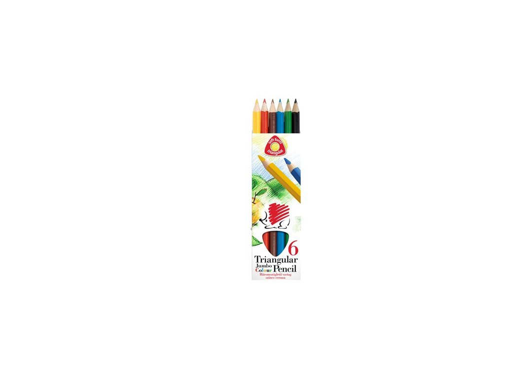 Farebné ceruzky, sada, trojhranné, hrubé, ICO "Ježko", 6 rôznych farieb