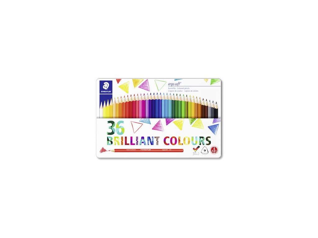 Farebné ceruzky, sada, trojhranné, kovová krabica,STAEDTLER "Ergo Soft 157", 36 rôznych farieb