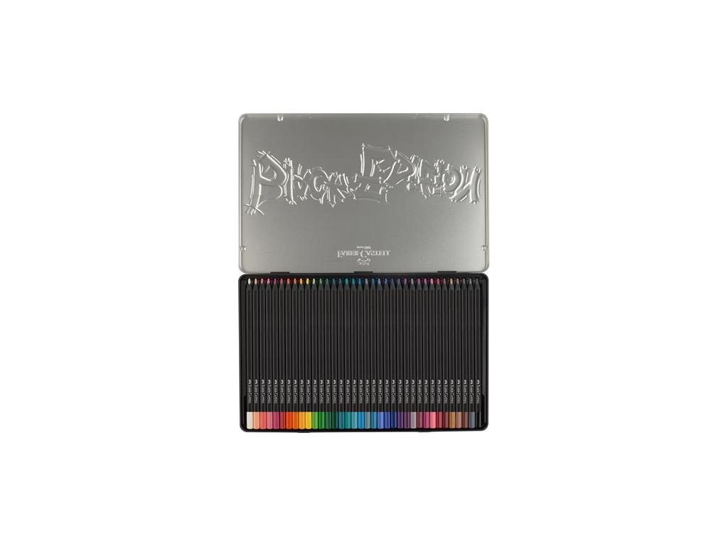 Farebné ceruzky, sada, trojhranné, v plechovej krabičke, FABER-CASTELL "Black Edition", 36 rôznych farieb