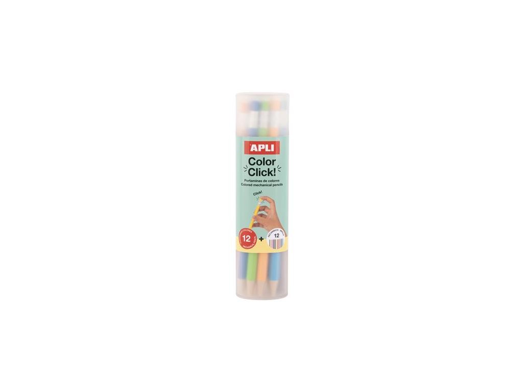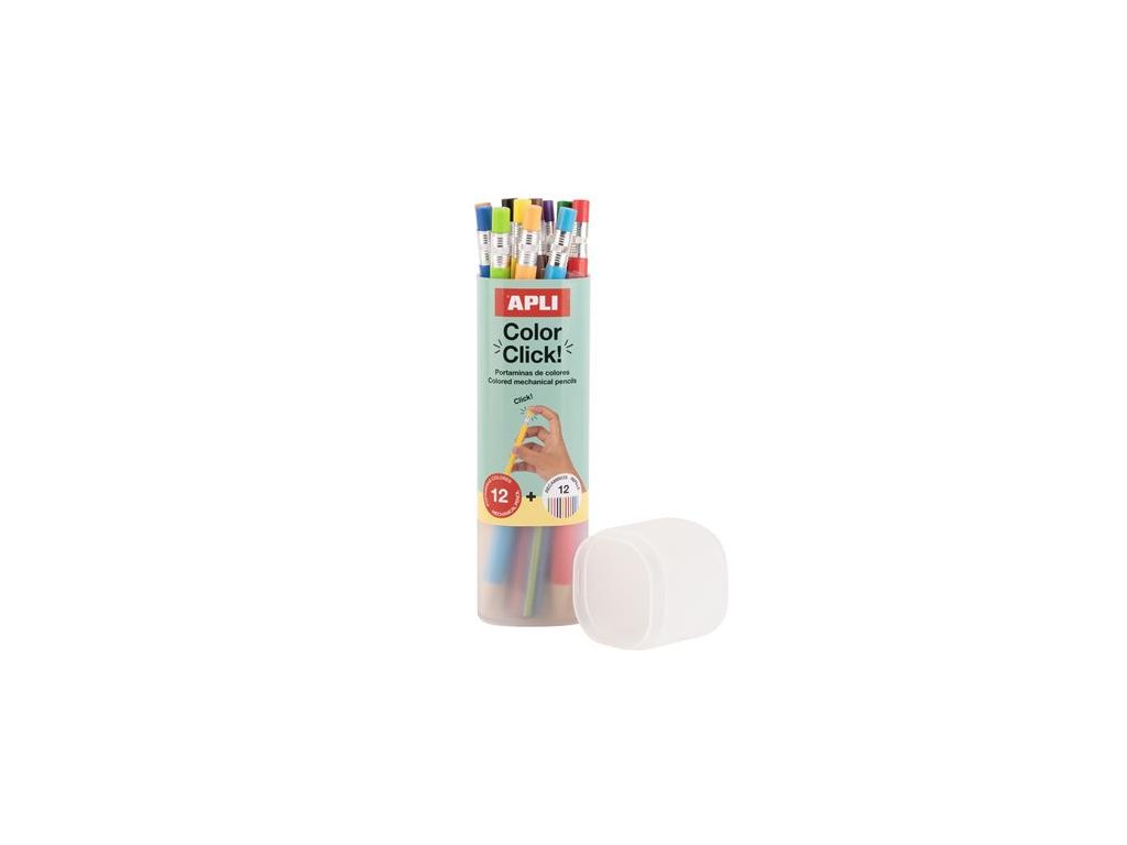 Farebné mechanické ceruzky, sada, v puzdre, APLI "Color Click", 12 rôznych farieb