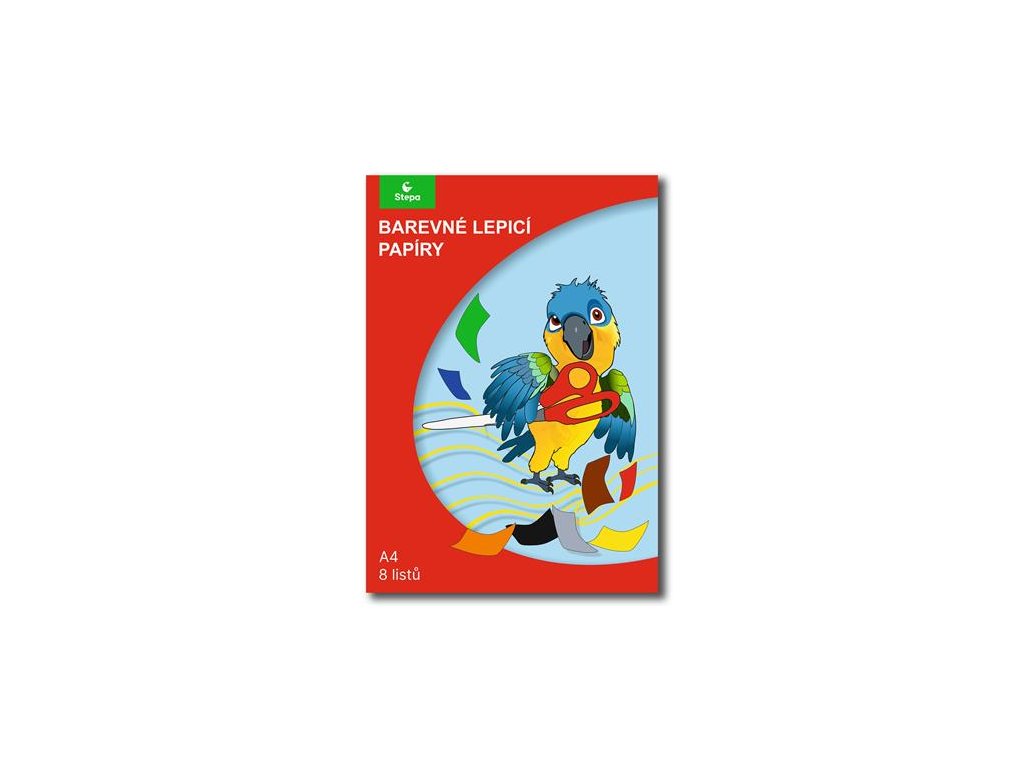 Farebný papier, A4, samolepiaci, 8 listov, STEPA, mix farieb