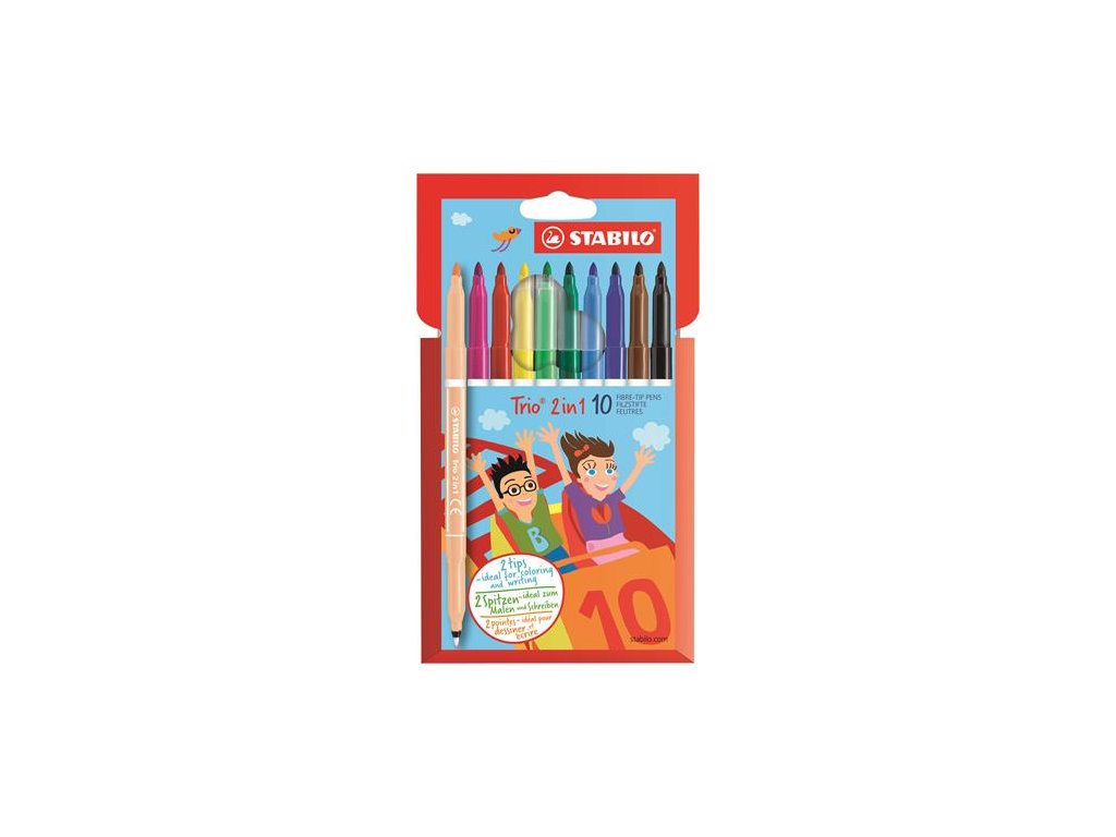 Fixky, 0,5-2 mm, obojstranné, STABILO "Trio 2 in 1", 10 rôznych farieb