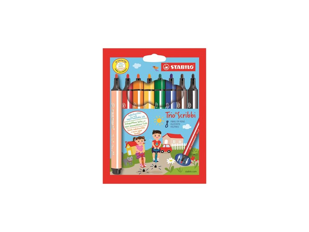 Fixky, 1,5-2 mm, pohyblivý hrot, STABILO "Trio Scribbi", 8 rôznych farieb
