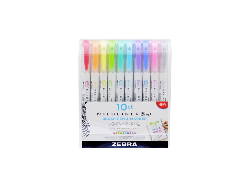 Fixky, sada, 0,5/0,7 mm, s dvomi hrotmi, ZEBRA "Mildliner Brush&Marker", 10 rôznych farieb