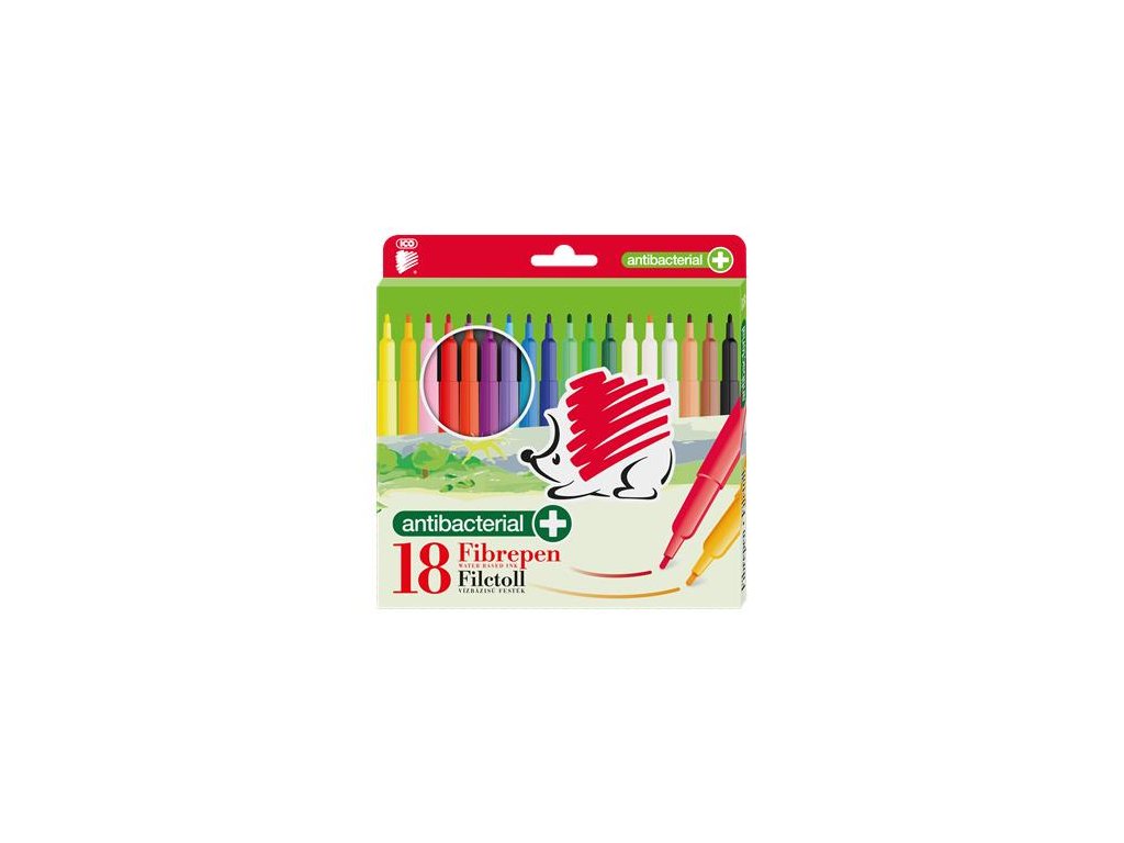 Antibakteriálne fixky Rainbow na vodnej báze, májú vzduchotesnú bezpečnostnú čiapku, ktorá chráni hrot, vďaka čomu je táto fixka vhodná na kreslenie aj farbenie. Plastové časti obsahujú ióny striebra Biomaster pre antibakteriálnu ochranu pre ešte väčšiu bezpečnosť. Bolo preukázané, že antibakteriálne produkty ICO majú baktericídne vlastnosti a do 24 hodín zabíjajú patogény s účinnosťou 99,9%, ktoré sa usadzujú na povrchu predmetov. Antibakteriálny účinok bol testovaný a potvrdený spoločnosťou Industrial Microbiologic Services Ltd. v Anglicku. Vlastnosti: - fixky Rainbow - 18 dielna sada - s antibakteriálnou ochranou - hrúbka písma: 1 mm Značka: ICO Výrobca: ICO ZRT Adresa: 2013 Pomáz, ICO út 5.; EU, Hungary Web: www.ico.eu Email: post@ico.euDodatočné parametre
