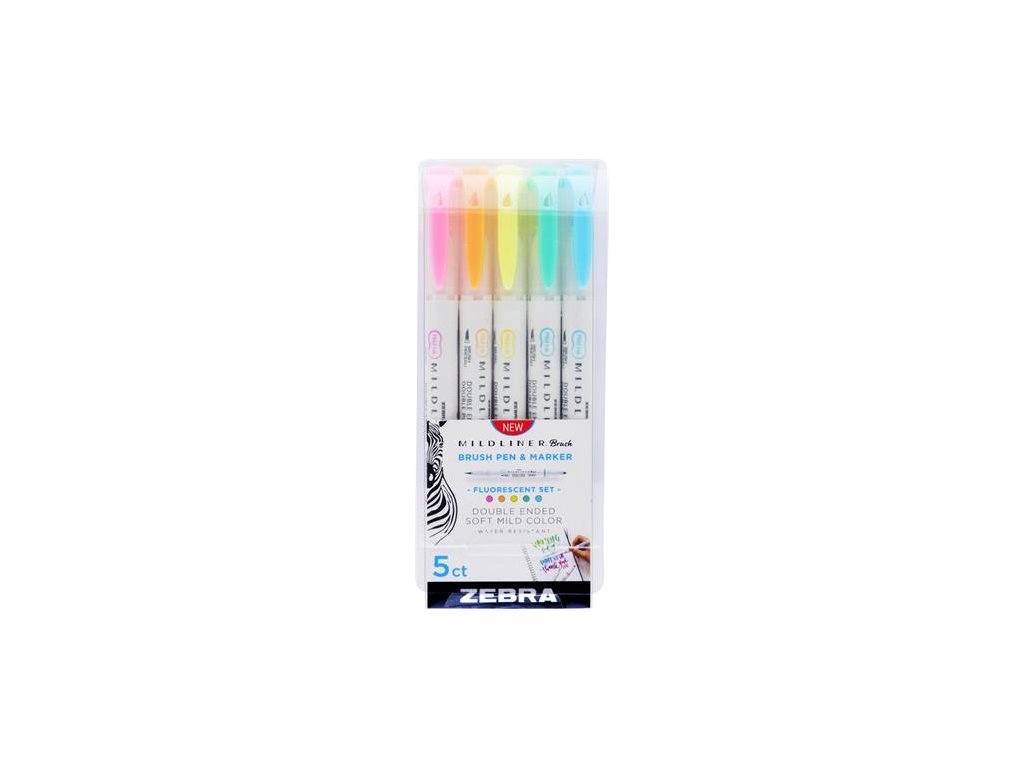 Fixky, sada, obojstranné, ZEBRA "Mildliner Fluorescent", 5 farieb