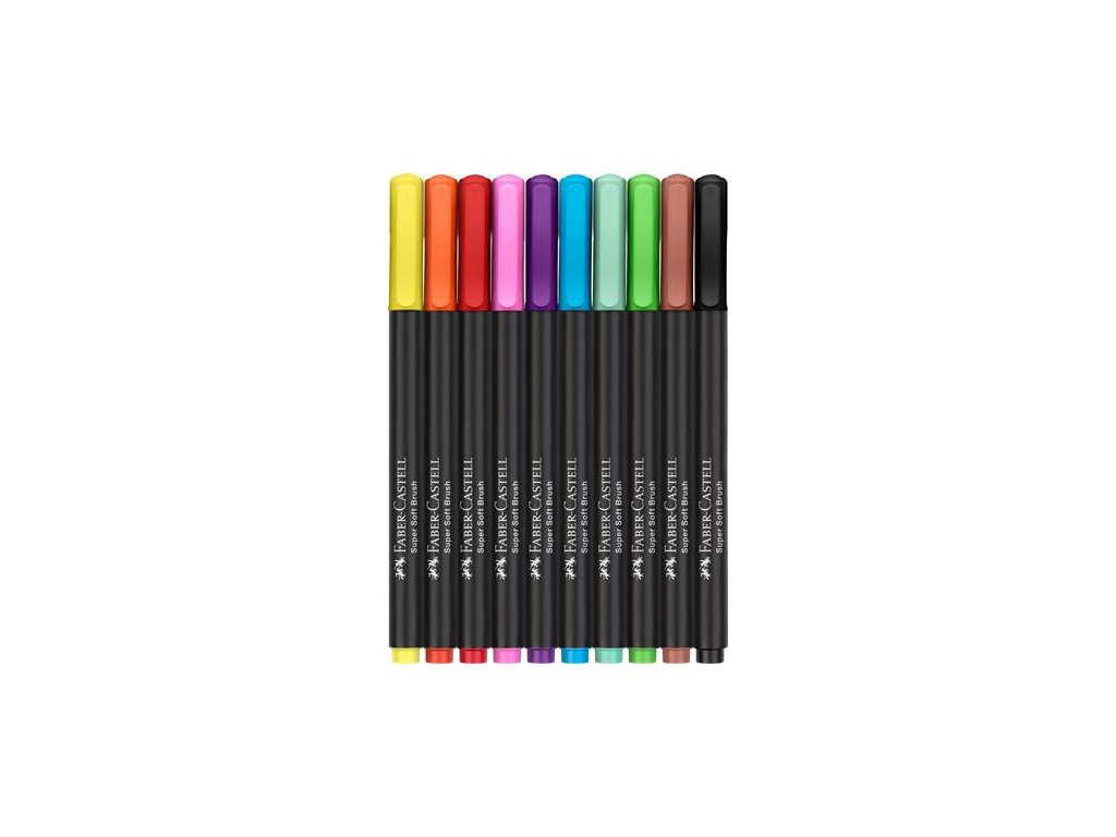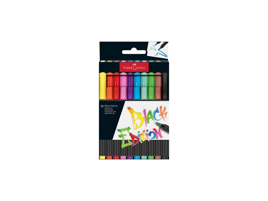 Fixky v rvare štetca, sada, FABER-CASTELL "Black Edition" 10 rôznych farieb