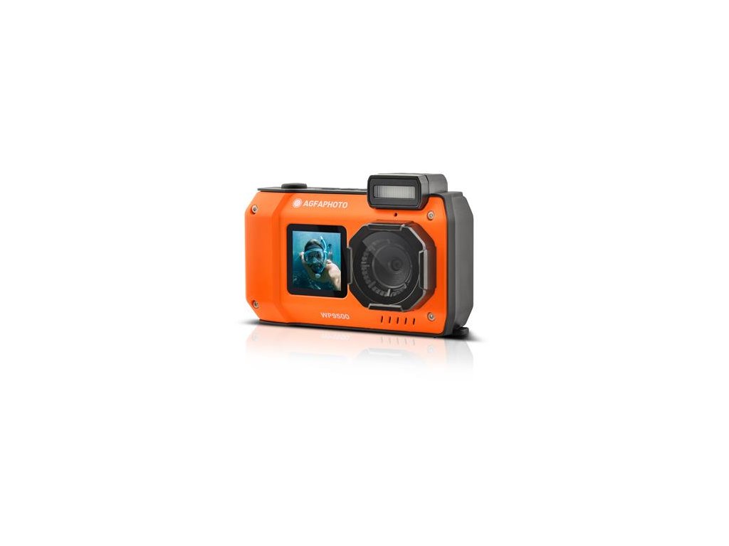 Fotoaparát, digitálny, vodeodolný, s dvojitým displejom, AGFAPHOTO Realishot "WP9500", oranžový-čierny