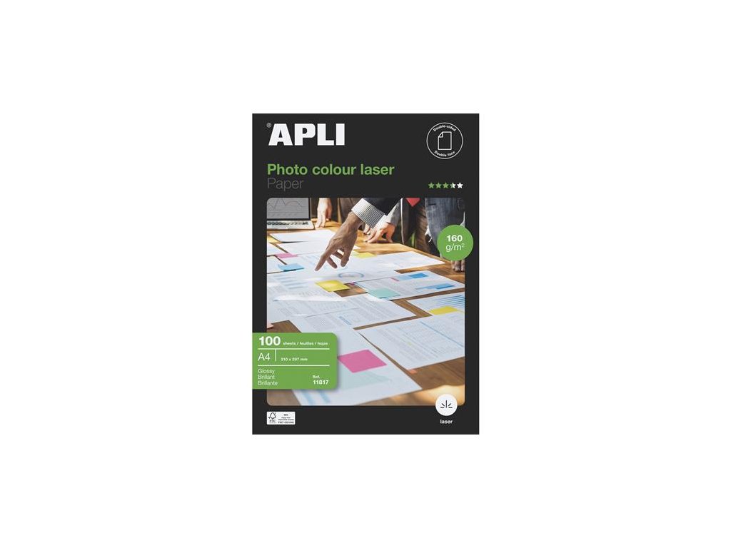 APLI fotopapier pre kvalitný vzhľad obrázka! - fotopapier na farebnú tlač vo formáte A4 - 160 g / m2, obojstranný papier, obojstranný lesklý - s rýchlo schnúcou prednou vrstvou - možno použiť v laserových tlačiarňach - FSC certifikovanéDodatočné parametre