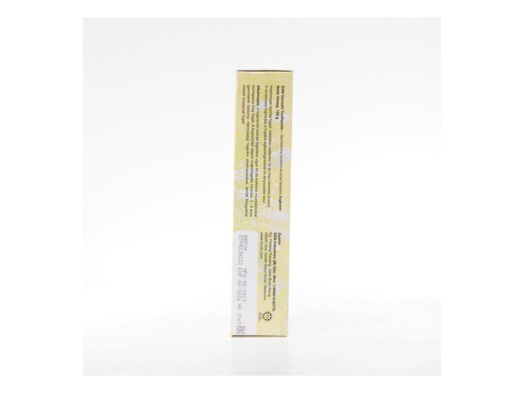 Inovatívna zubná pasta s kvalitným výťažkom z Ganodermy. Neobsahuje sacharín ani farbivá. Čistí zuby, osviežuje dych a rozjasní každý úsmev. Aplikujte na mokrú zubnú kefku. Zuby čistite krúživými pohybmi. Po vyčistení vypláchnite ústa vodou. Deťom vo veku 3-6 rokov dávkujte malé množstvo veľkosti hrášku, aby sa minimalizovala možnosť prehltnutia. Zloženie: dicalcium phosphate, aqua, sucrose, glycerin, sodium alginate, menthol, ganoderma lucidum, peppermint oil, sodium lauryl sulphate