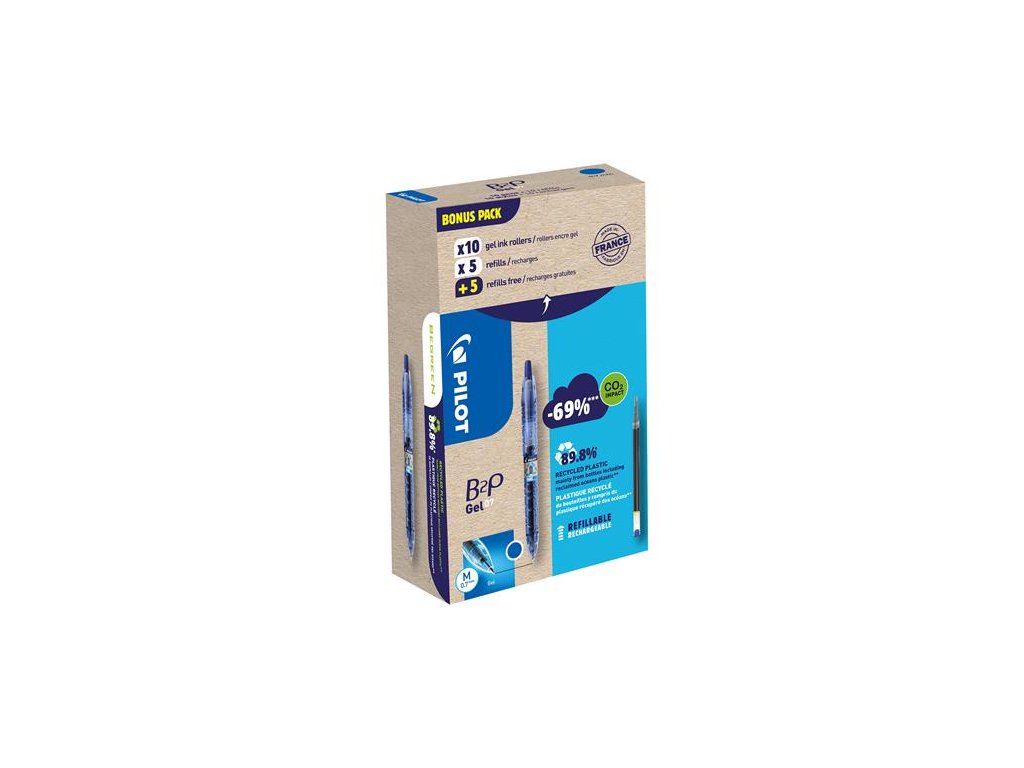 Z plastovej fľaše na minerálku sa stáva telo gélového pera s tlačidlom: to je B2P, ekologické pero, ktoré ponúka ešte oveľa viac. Gélový atrament poskytuje výnimočný komfort pri písaní a jeho dlhú životnosť zabezpečuje mimoriadne pevná a odolná guľôčka z wolfrám-karbidovej zliatiny. -vymeniteľná náplň -vyrobené najmä z recyklovaných plastových (PET) fliaš -vrúbkovaný protišmykový úchyt -vysoko kvalitný gélový atrament -hrúbka písma: 0,4 mm -priemer guľôčky: 0,7 mm -obsah balenia: 10 -10 ks modrých gélových pier B2P a náplní -vymeniteľná náplň: PG2ZSBKDodatočné parametre