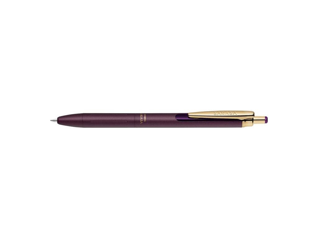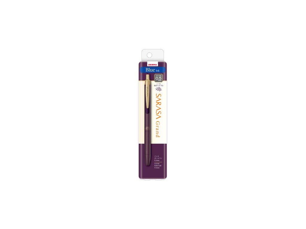 Gélové pero, 0,33 mm, stláčací mechanizmus, telo pera: baklažánovo fialová, ZEBRA "Sarasa Grand", modrá