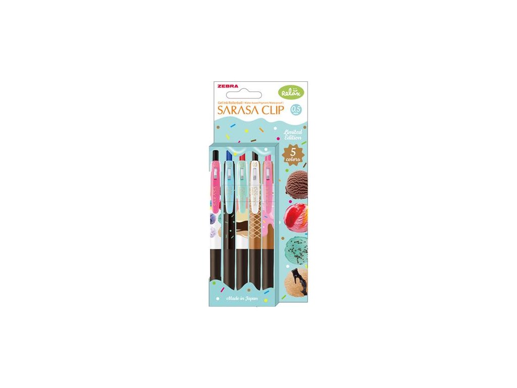 Gélové pero, 0,33 mm, stláčací mechanizmus, ZEBRA "Sarasa Clip Ice Cream", 5 rôznych farieb