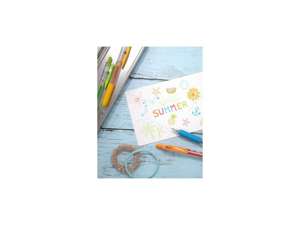 Gélové perá Sarasa Clip vynikajú svojím čistým dizajnom a praktickými funkciami, vďaka čomu sa odlišujú od ostatných písacích potrieb. Inovatívny, pružný klip umožňuje jednoduché pripnutie pera na vrecko alebo obal poznámkového bloku, takže ho máte vždy poruke. Zladenie farby tela a atramentu nie je len estetickou výhodou, ale aj praktickou pomôckou – okamžite vidíte, akou farbou budete písať. Rýchloschnúci atrament Sarasa Clip zaručuje písanie bez rozmazania a telo pera vyrobené zo 76 % z recyklovaných materiálov je dôkazom ekologického prístupu.Vlastnosti: