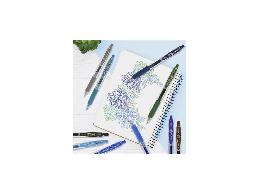 Gélové perá Sarasa Clip vynikajú svojím čistým dizajnom a praktickými funkciami, vďaka čomu sa odlišujú od ostatných písacích potrieb. Inovatívny, pružný klip umožňuje jednoduché pripnutie pera na vrecko alebo obal poznámkového bloku, takže ho máte vždy poruke. Zladenie farby tela a atramentu nie je len estetickou výhodou, ale aj praktickou pomôckou – okamžite vidíte, akou farbou budete písať. Rýchloschnúci atrament Sarasa Clip zaručuje písanie bez rozmazania a telo pera vyrobené zo 76 % z recyklovaných materiálov je dôkazom ekologického prístupu.Vlastnosti: