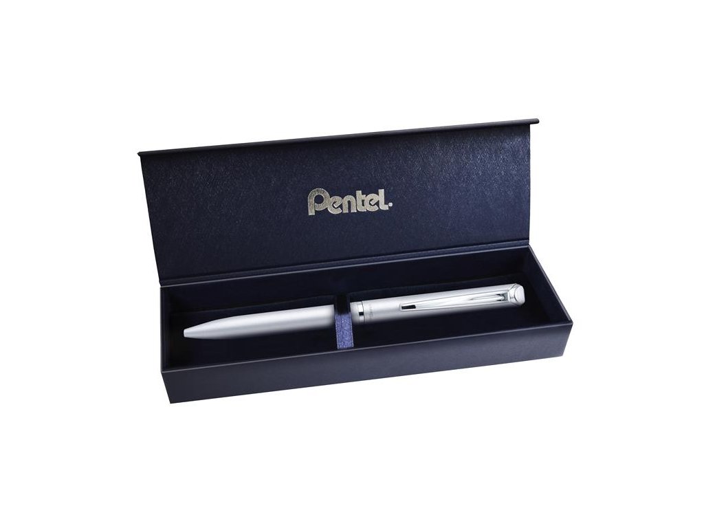 Gélové pero, 0,35 mm, otočné, telo pera: matná strieborná, PENTEL "EnerGel BL-2007" modrá