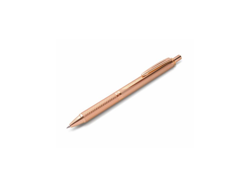 Gélové pero, 0,35 mm, stláčací mechanizmus, telo pera: rosegold, PENTEL "EnerGel BL-407" modrá