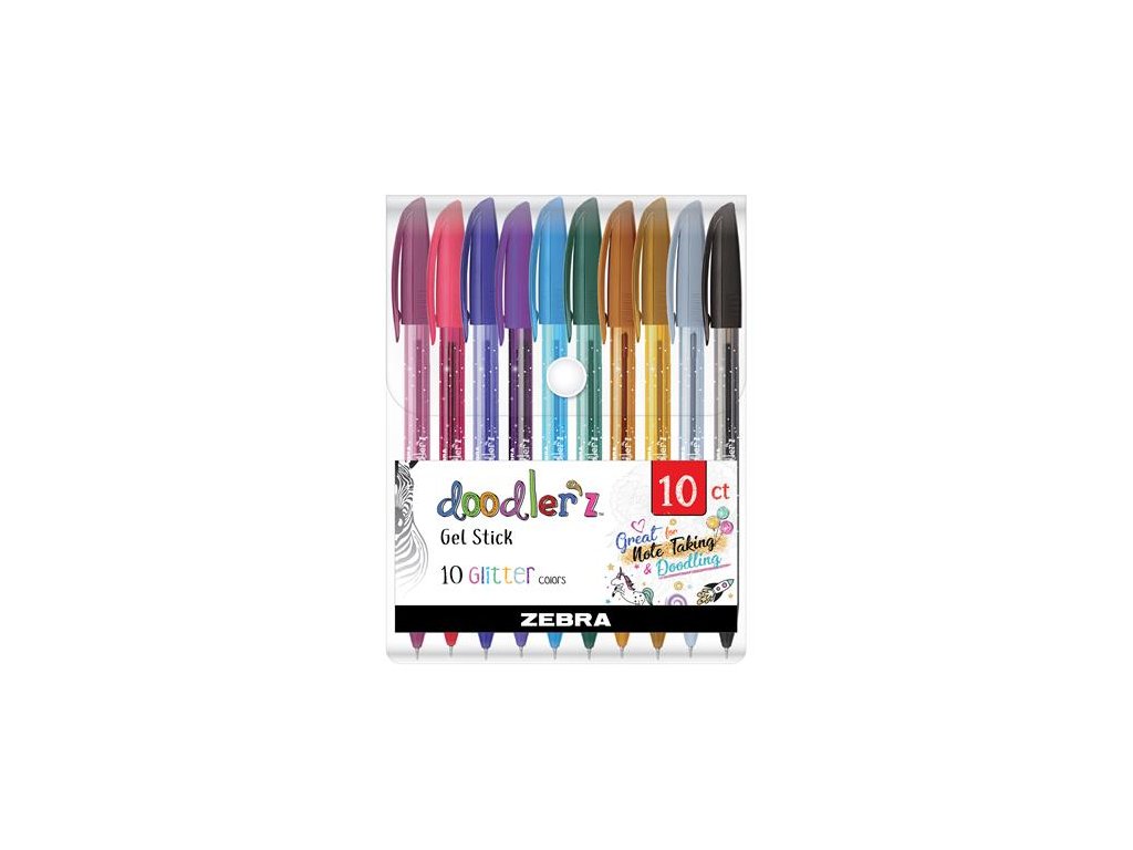 Gélové pero, sada, 0,33 mm, s uzáverom, ZEBRA "Doodler`z Glitter", 10 rôznych farieb