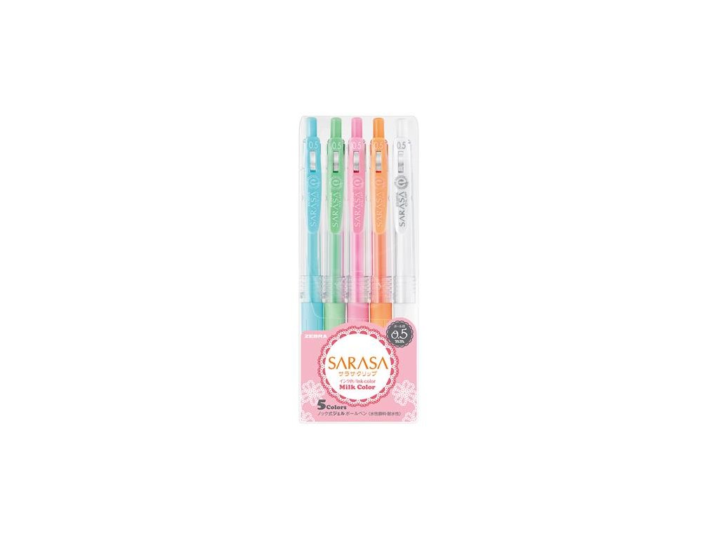 Gélové pero, sada, 0,33 mm, stláčací mechanizmus, ZEBRA "Sarasa Clip Milk", mix 5 pastelových farieb