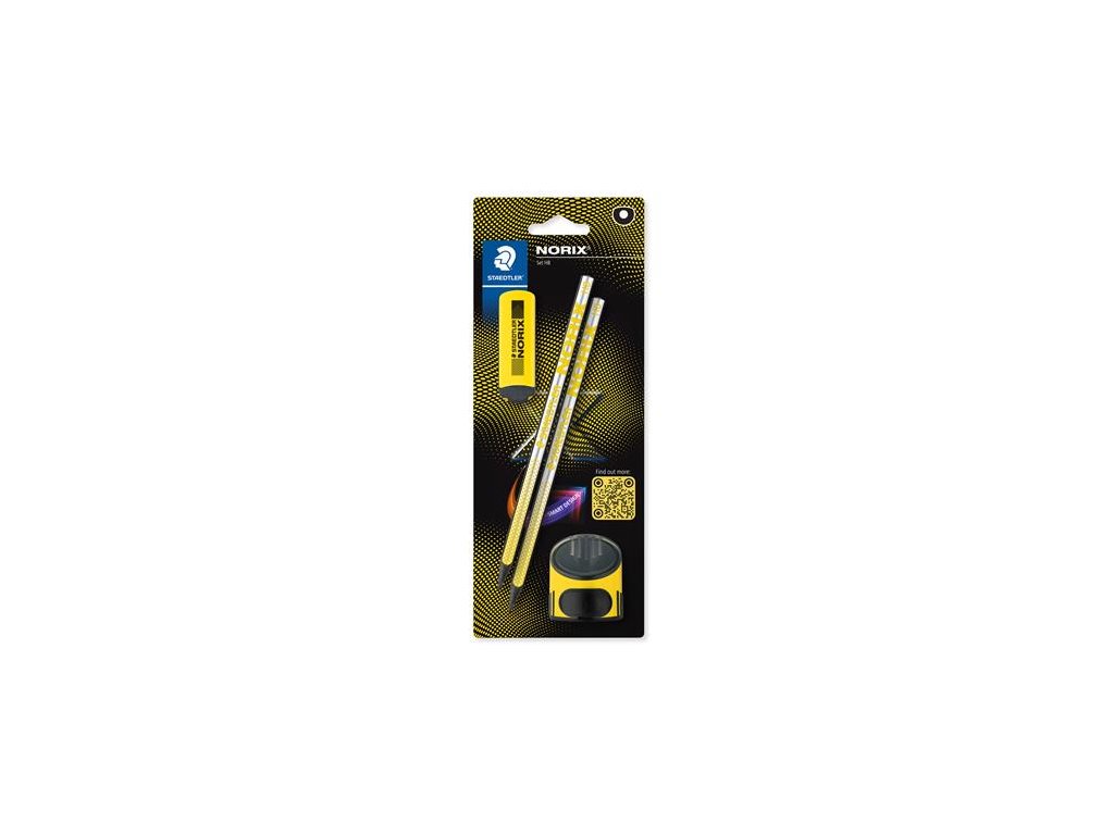 Grafitová ceruzka, sada, so strúhadlom a gumou, tvrdosť HB, STAEDTLER "Norix® 181", žltá