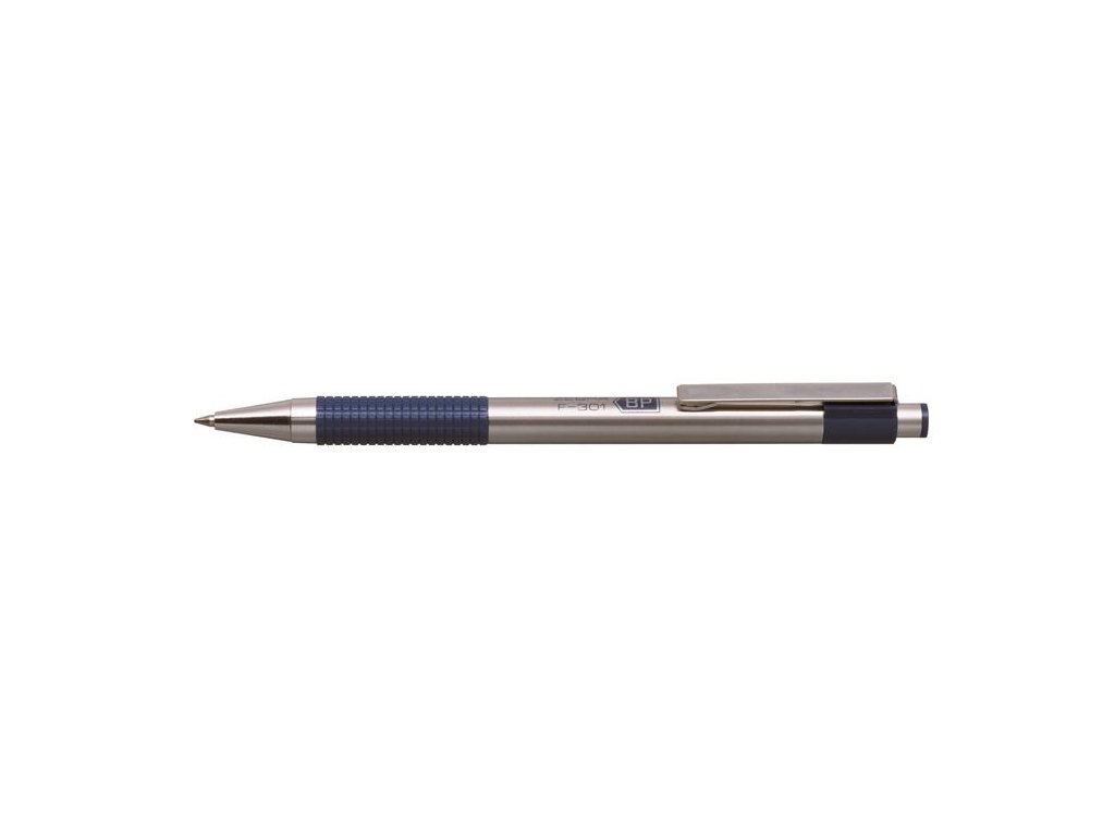 Telo guľôčkového pera F-301 vyrobené z nehrdzavejúcej ocele je zárukou štýlovosti a trvanlivosti. Vrúbkovaný úchop zaručuje pohodlné a stabilné písanie. Farba tela je modrá, farba atramentu modrá. Priemer guľôčky: 0,7 mm, hrúbka písma: 0,24 mm. Typ náplne: F.Dodatočné parametre