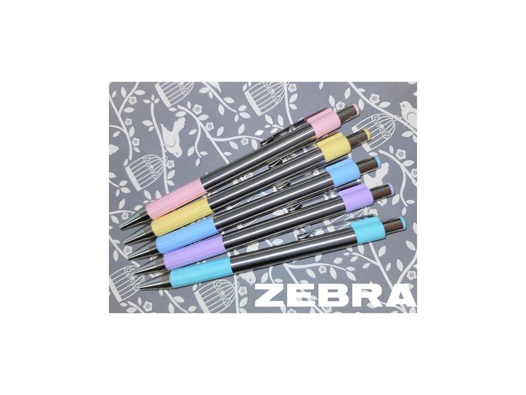 Guľôčkové pero, 0,24 mm, stláčací mechanizmus, nerezová oceľ, farba tela: pastelová ružová, ZEBRA "F-301", modré
