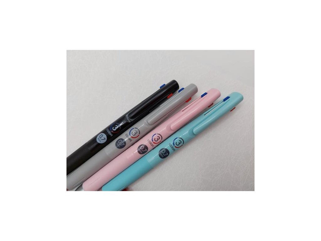 Guľôčkové pero, 0,24 mm, stláčací mechanizmus, trojfarebné, ZEBRA "Blen 3C", čierne telo