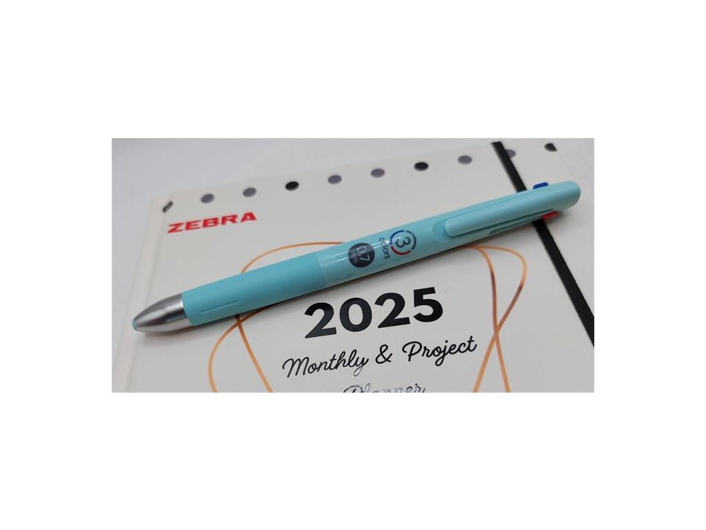 Guľôčkové pero, 0,24 mm, stláčací mechanizmus, trojfarebné, ZEBRA "Blen 3C", modrozelené telo