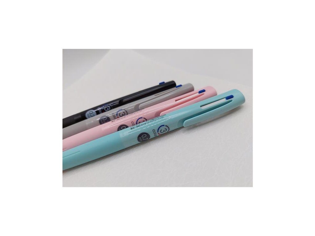 modrá, čierna a červená farba písma v jednom pere