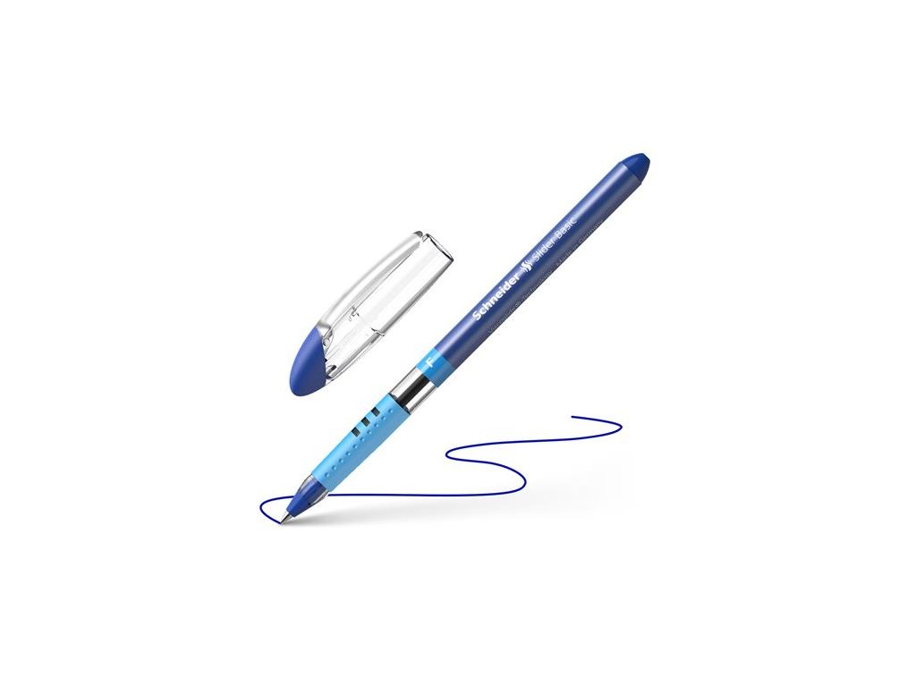 Guľôčkové pero, 0,3 mm, s vrchnákom, SCHNEIDER "Slider F", modré