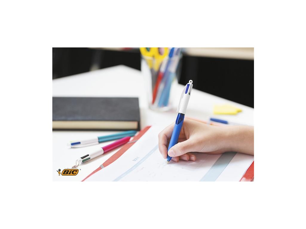 plastové telo, pogumovaný úchyt silné, odolné prevedenie, až 50 000 zapnutia a vypnutia 4 farby v jednom tele: modrá, čierna, červená, zelená čisté, precízne písmo dá sa zavesiť na krk dĺžka písma: 4 farby x 2000 m priemer guľôčky: 1,0 mm hrúbka písma: 0,32 mm Značka: BIC Výrobca: BIC Slovakia s.r.o. Adresa: Premiselna 1 926 01 Sered, Slovakia Web: https://corporate.bic.com/en-us Email: janos.petrovszky@bicworld.comDodatočné parametre