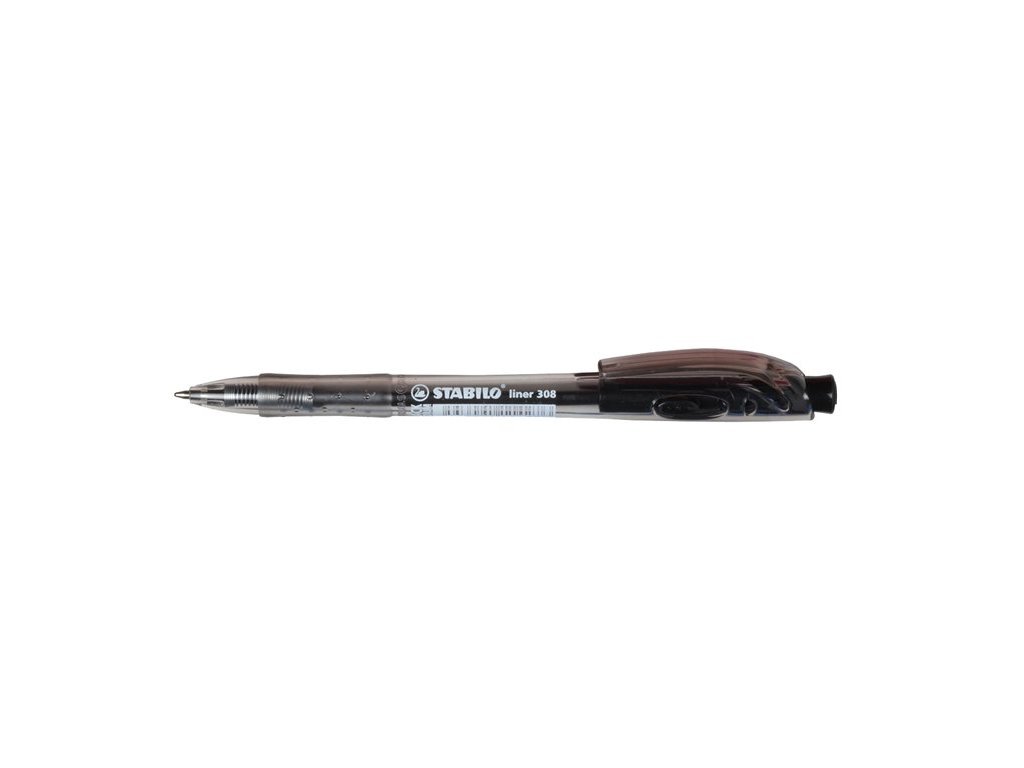 Guľôčkové pero, 0,38 mm, stláčací mechanizmus, STABILO "Liner 308", čierne