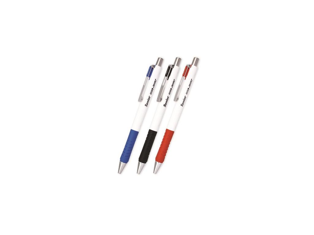 Guľôčkové pero, 0,4 mm, stláčací mechanizmus, rôzne farby tela, FLEXOFFICE "Senior", modré