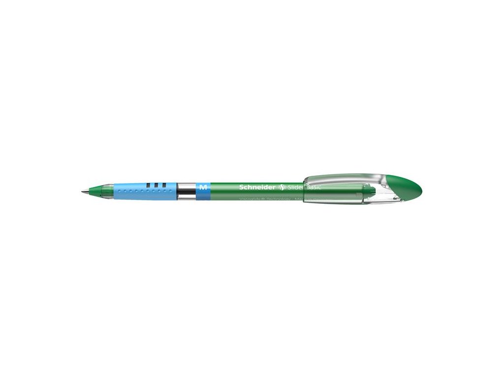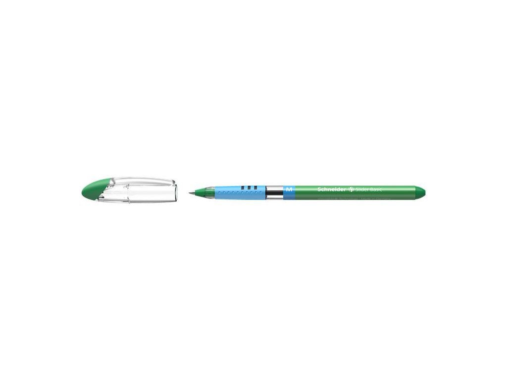 Guľôčkové pero, 0,5 mm, s vrchnákom, SCHNEIDER "Slider M", zelené