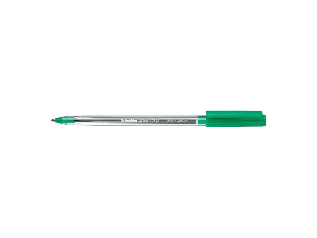 Guľôčkové pero, 0,5 mm, s vrchnákom, SCHNEIDER "Tops 505 M", zelené